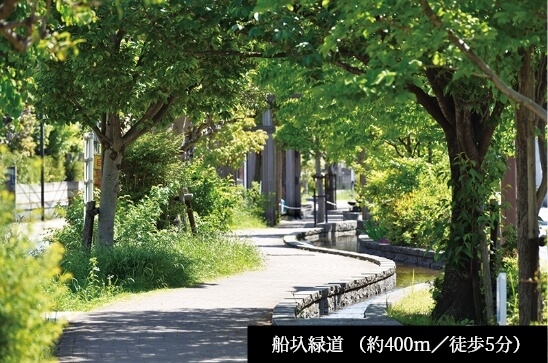 大型商業施設、史跡や緑の